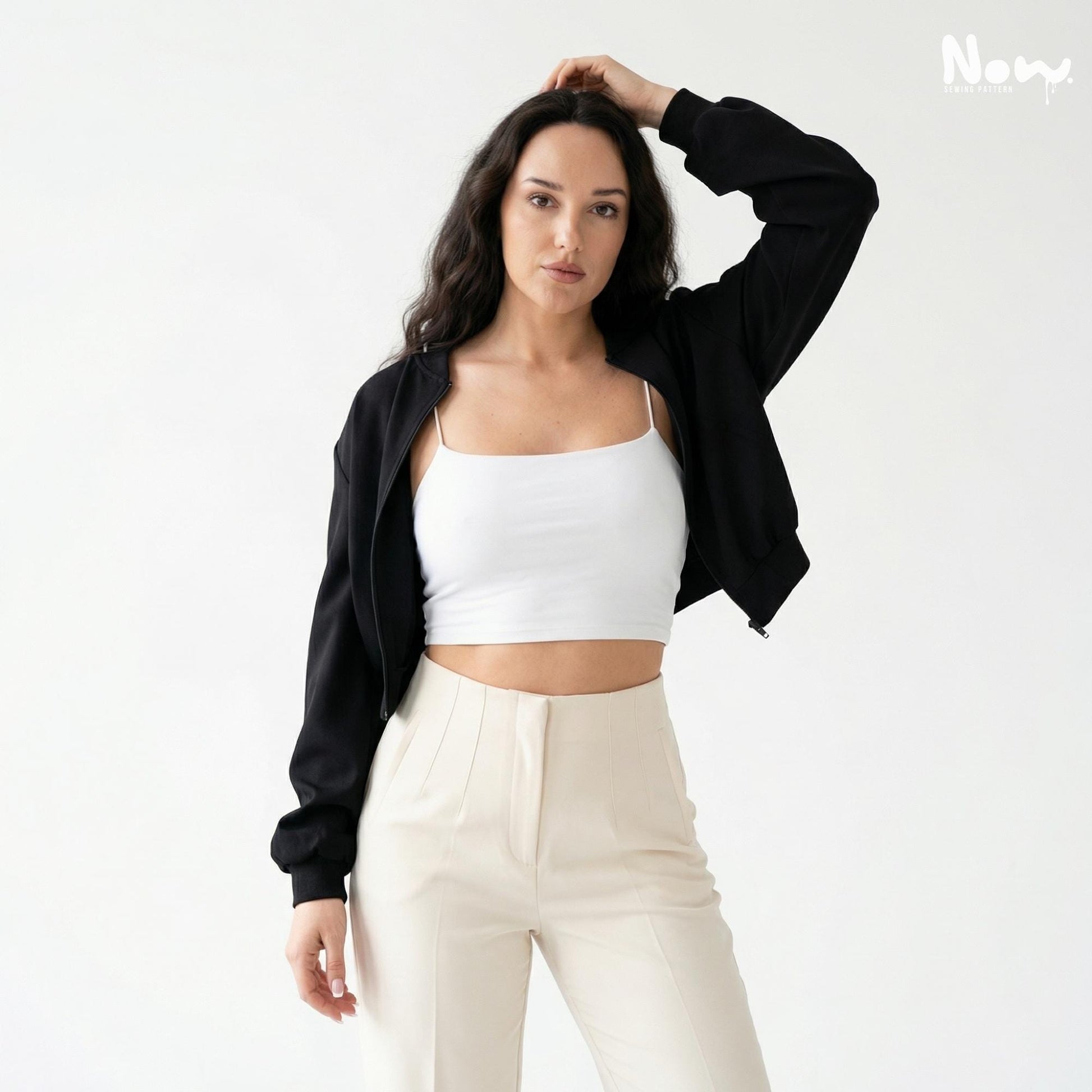 Sew a modern cropped bomber jacket with a clean, sporty silhouette and an easy everyday fit. This pattern features:
